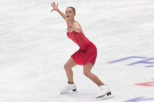 Двоеглазова прыгнула в произвольной программе четверной лутц и с падением четверной тулуп. Захарова исполнила два четверных тулупа.